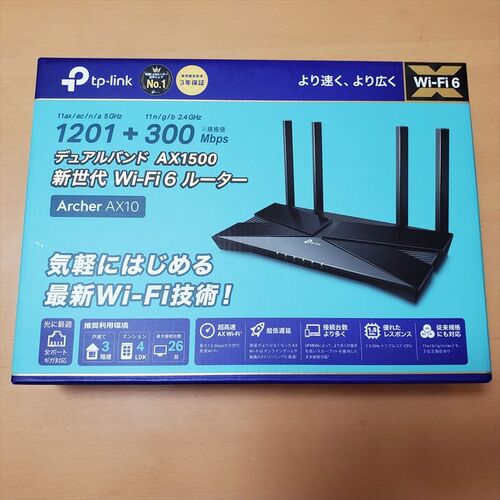 TP-LinkのWi-Fi 6対応Wi-Fiルータ「Archer AX10」を購入した。